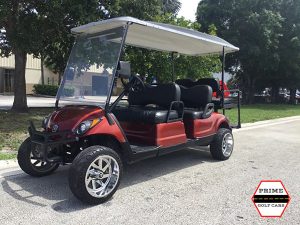 As the most recent model, the Yamaha Drive 2 has more advanced technology and upgraded features, with an automotive-style dash, a wider wheelbase, and a variety of different customization options, including allowing for the installation of a USB charging port, self-canceling turn signals, an enhanced audio experience with a JBL sound system, and a color coded speedometer. Seats are also wide and adjustable for various heights, and the cabin has a large amount of legroom. Its independent rear suspension provides a smooth ride, even on uneven terrain. Like all Yamaha carts, gas and electric versions are available.